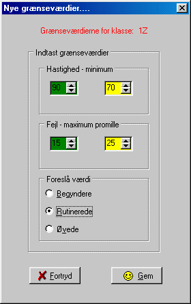 Grænseværdierne indstilles, således at de farver der benyttes, når resultaterne vises, svarer til forventningerne til klassetrinet. Dermed er der mulighed for at differentiere visningen for begyndere og garvede.
