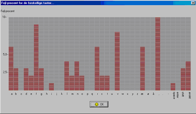 Her ses grafen for fejlprocenterne for de forskellige taster i alle øvelserne: